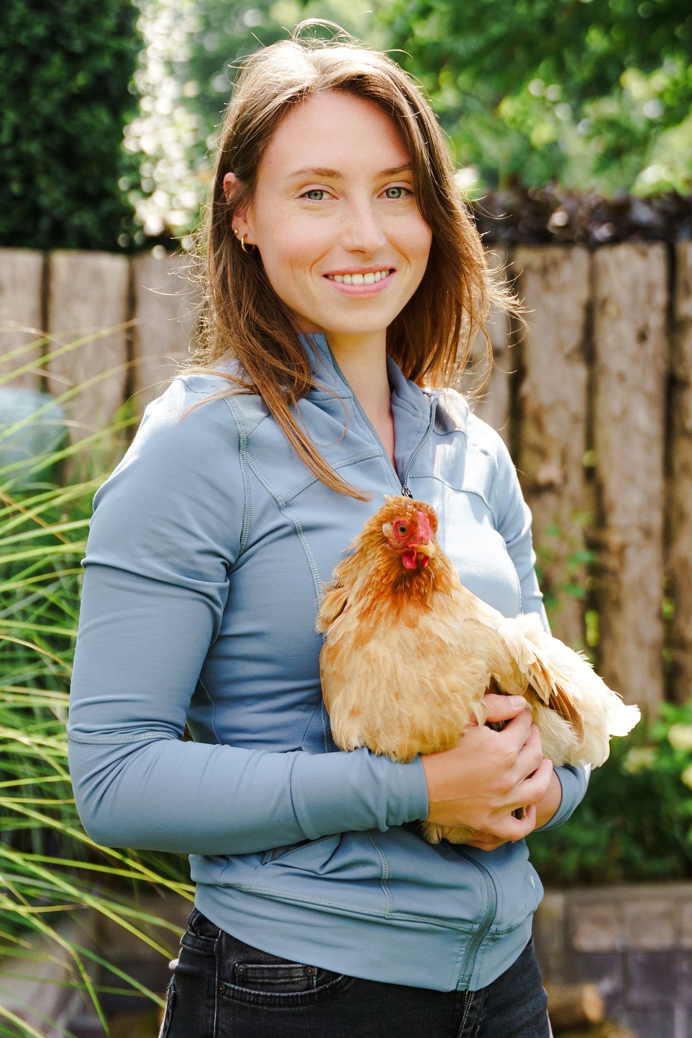Ik woon samen met mijn partner, twee honden en vijf kippen op een oude boerderij in het mooie Olst. Deze plek geeft me niet alleen rust, maar ook dagelijks inspiratie. De kippen lopen hier heerlijk te scharrelen door de tuin. In mijn vrije tijd ben ik vaak buiten te vinden: wandelend of te paard door de natuur, met mijn handen in de (moes)tuin of met een goed boek in de zon.